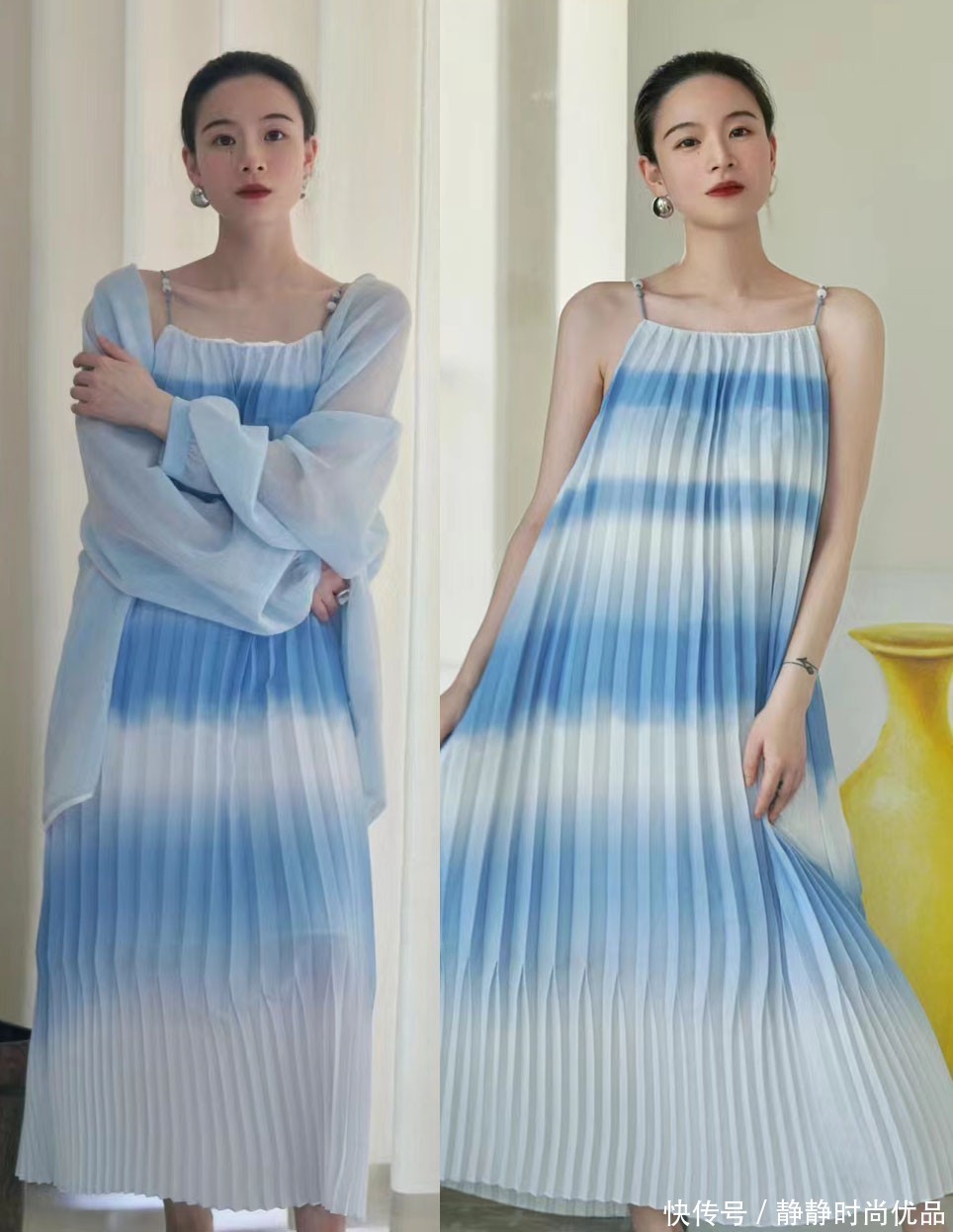 思要穿衣雅瞻念,服装选款天然是一个很热切的选拔,正像是图中这件连衣裙,无论是蓝白陈设的缠绵,如故细褶的缠绵,齐能够昭着的升迁造型的脉络感以及立体感,使造型格调越发突显出丰富前锋的一面。
