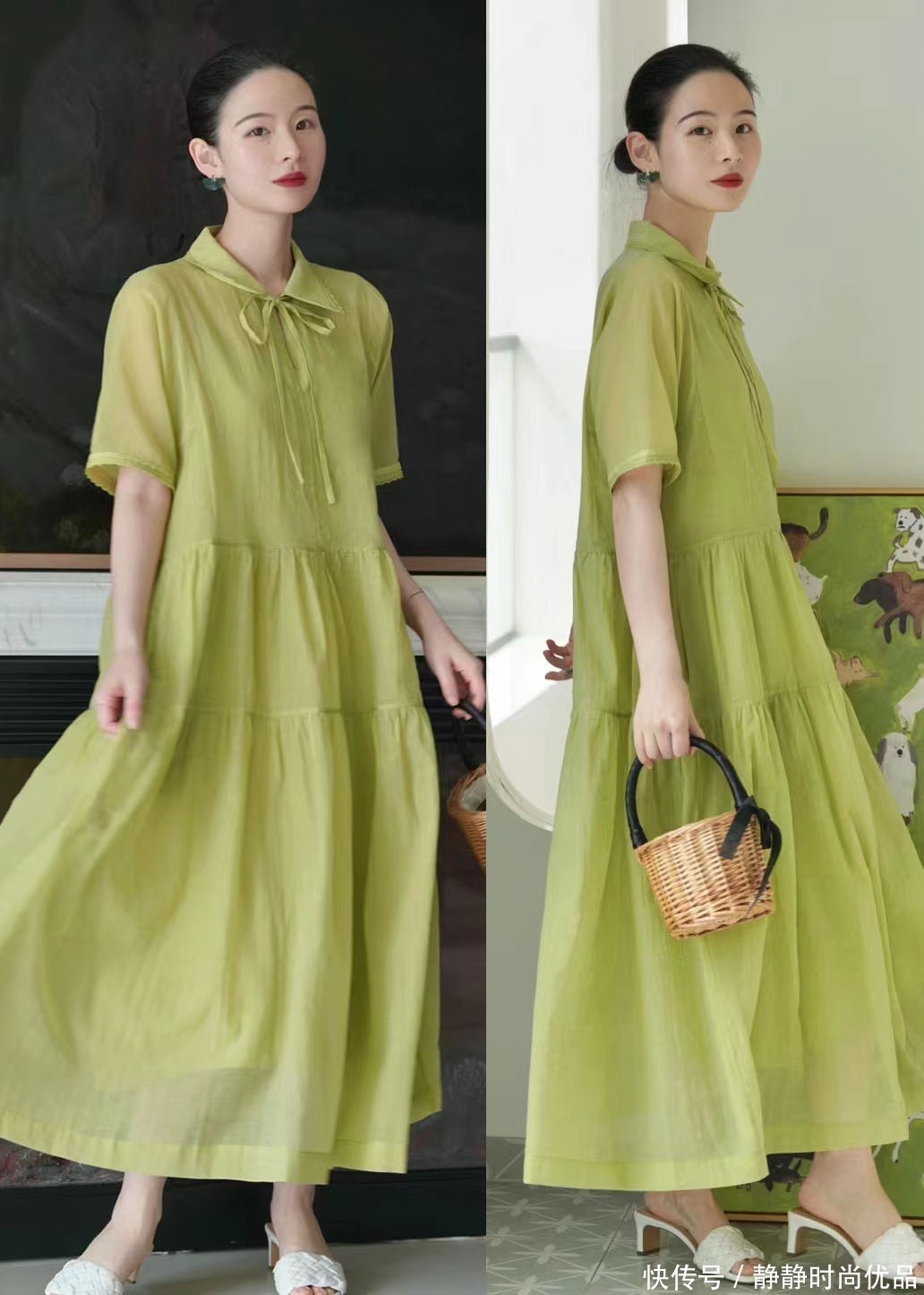 皇冠体育维基百科皇冠信用网牛油果色的连衣裙,即是很显崭新韵味的一款单品,结合上偏薄的面料,还能够使轻细感更进一步的演绎出来。