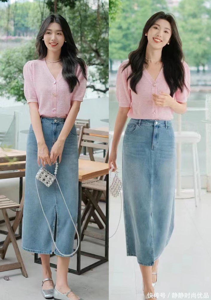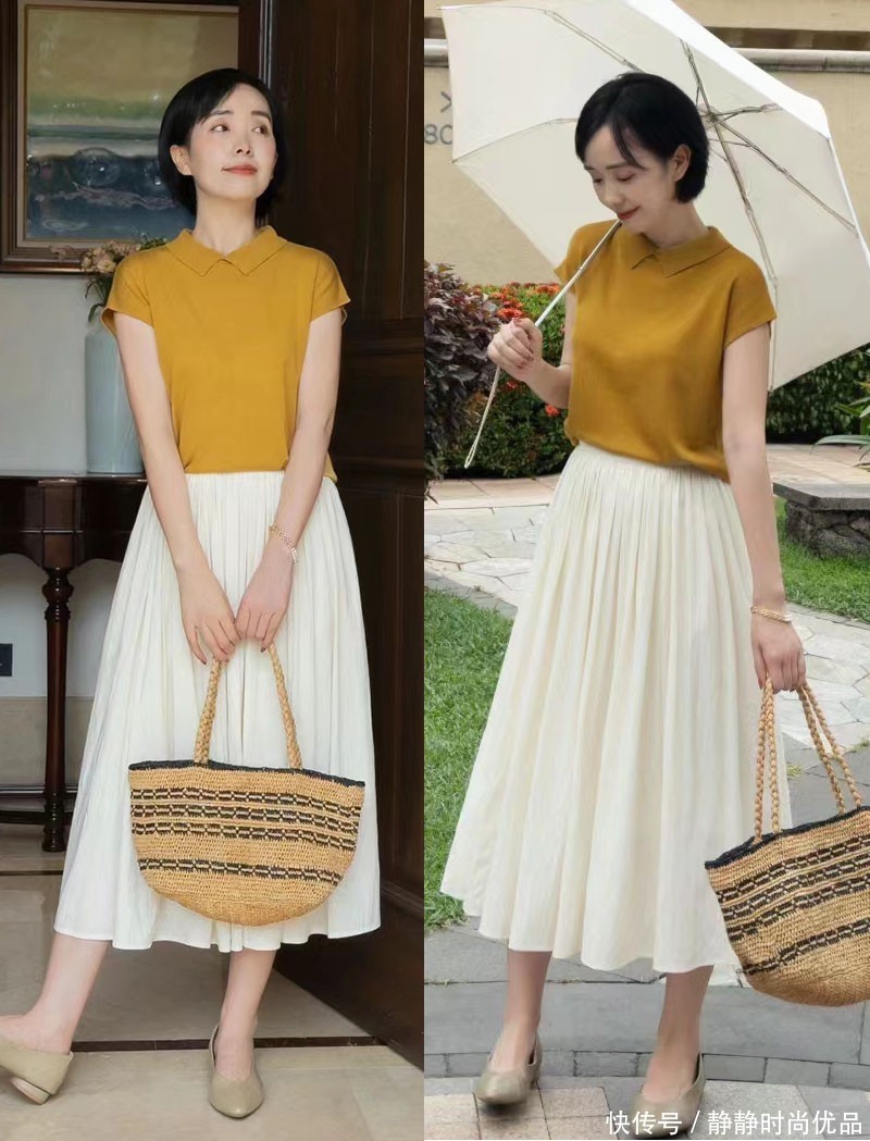 袭取了浅蓝色衬衣和白色短裙,看上去十分的爽气融会,同期这种会通出的视觉格调,也不错反衬到脸部,从而使东谈主获取更好的面部气色。