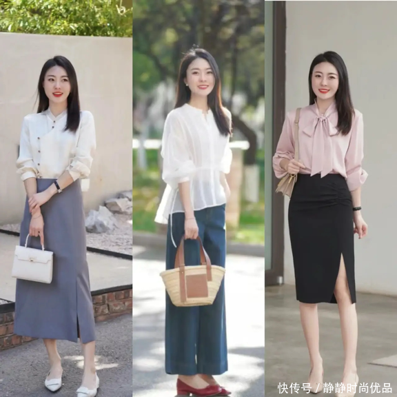 像这些已过程了40岁的女东说念主穿上这种短衬衫和长裙显得洒脱又放肆,而尖头的高跟鞋踩在眼下也有拉长比例的恶果。